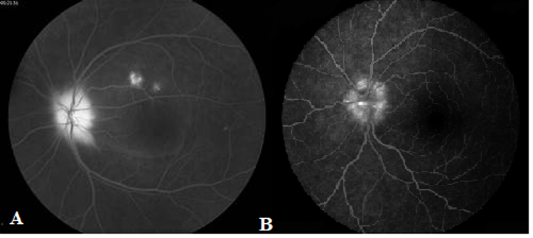 FFA in disc edema involves intravenous injection of fluorescein and understanding the pattern of fluorescence of the disc. In papilledema, there is late leakage of the disc and in eyes with superficial ODD, there is early and late nodular staining of the disc, with no increase in size of the hyperfluorescence. This method has been found to have the highest accuracy in identifying true from pseudo disc edema. [8]